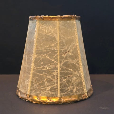 2 stk gamle lampeskjermer i hud selges, ca 10 cm i diameter