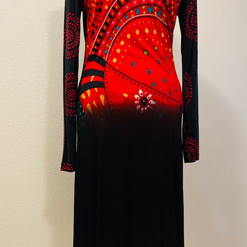 Nede er det lag på lag og snorer som en kan dra opp det ene stoffet da får den en ny look. ( må ikke)