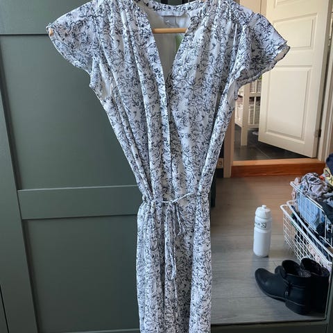 Blå kjole med hvite prikker, str 36