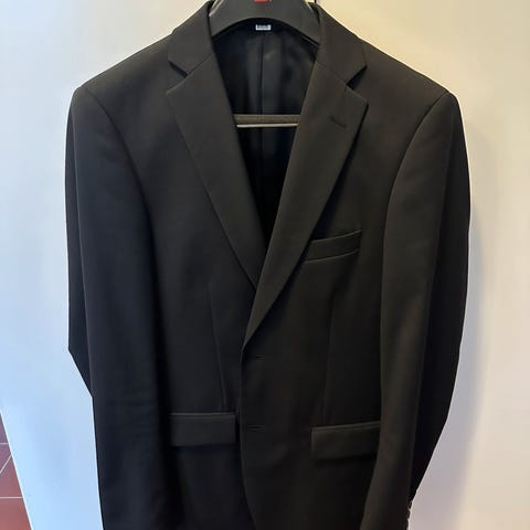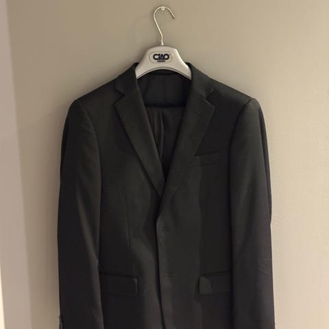 Selger svart Dressmann dress. Jakke str 44 slim fit, short og dressbukser. Str 30/32. Ikke synlig brukt og i veldig god stand. Selges samlet til 700 kr. eller 400kr per del