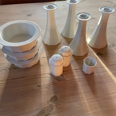 6 x hvite lysestaker i keramikk (ø 10cm)