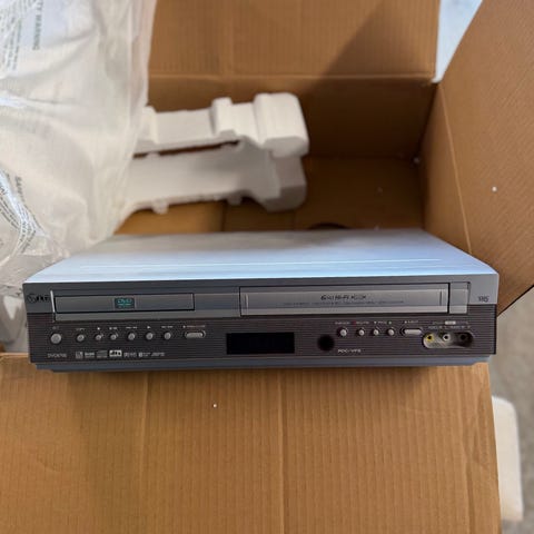 Meget pent- og lite brukt DVD-spiller med 250GB harddisk. Med denne kan du lett digitalisere dine gamle VHS eller betamax videofilmer eller ta opp dine favorittprogram fra fjernsynet og deretter brenne dine egne DVD-plater. Den spiller av de fleste vanlige formater og har også mulighet for å lese av dine gamle minnekort med bilder. Mange tilkoblingsmuligheter for lyd og bilde. Svært lite brukt, har stort sett ligget nedpakket i esken, men har tatt den ut og testet den og den fungerer fint. Alt av nødvendige kabler, fjernkontroll og instruksjoner følger med. Kommer i sin originale eske. Sender gjerne. Evt. frakt 140 kroner kommer i tillegg