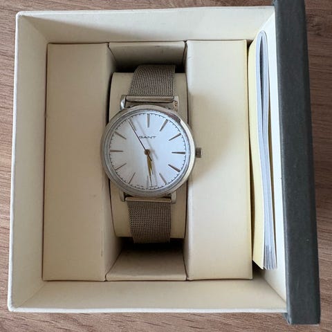 • Farge: Sølvfarget med krystaller rundt bezelen