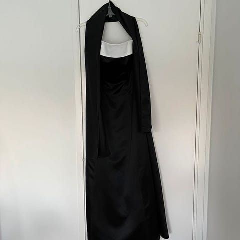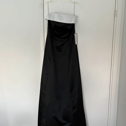Selger en helt ny elegant selskapskjole med lapper fra butikk fortsatt påfestet kjole.