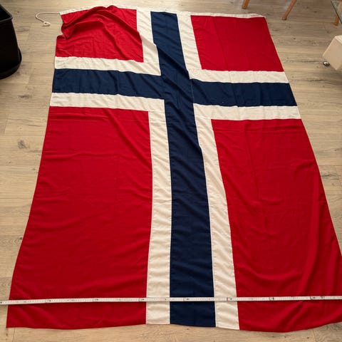Grunnet flytting fra et hjem uten flaggstang selger vi nå dette flotte store flagget fra Oslo Flaggfabrikk, str 275.