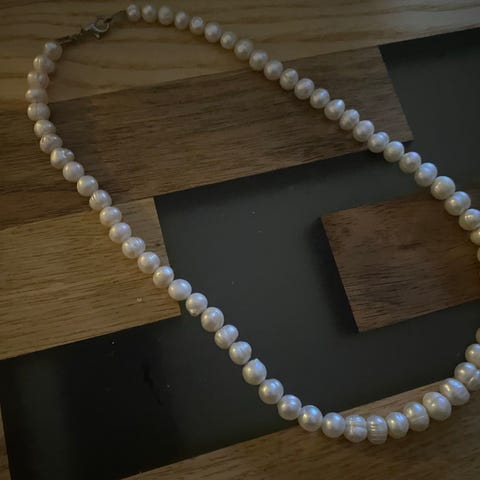 Perlekjede med lås i 585 / 14 karat gull og 6 diamanter tilsammen 0.06.
