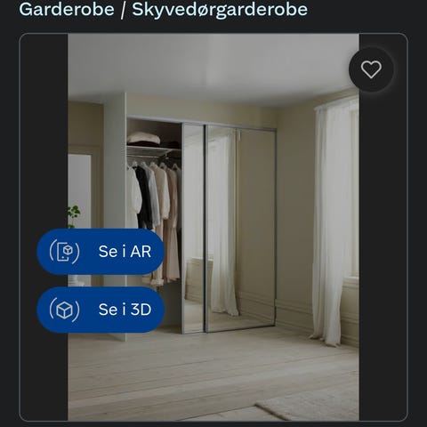 3 stk ELFA skyvedører for garderobe, med speilfront. Tilpasset et rom på ca 3m bredde, med 2,4m under taket.