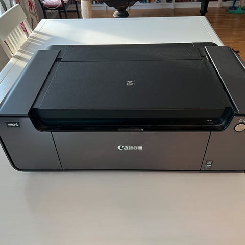 Selger en Canon PIXMA PRO-100S fotoskriver i god stand. Dette er en høykvalitets blekkskriver laget for fotografer og kreative som ønsker profesjonelle utskrifter hjemme eller i studio. Skriveren leverer svært gode farger, dype svarttoner og jevne overganger – perfekt for fotoutskrifter og kunsttrykk.