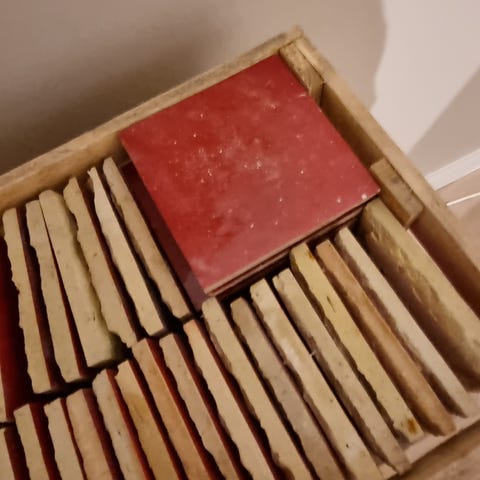 Bestilte for mange fliser ifm oppussing av bad. Har derfor til overs 8 stk håndmalte terracotta fliser fra Fired Earth. Flisene heter Atlas Pine Flower Nile. De er malt med bladgull. Flisene er 17x17. Utpris butikk pr flis er 1069 kr. Selges for 900kr stk. selger helst samlet.