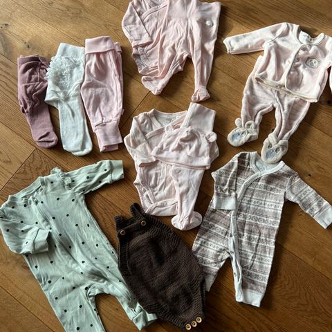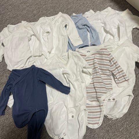 Body str 50. To ullbodyer og bomull, samt ei tynn babylue.