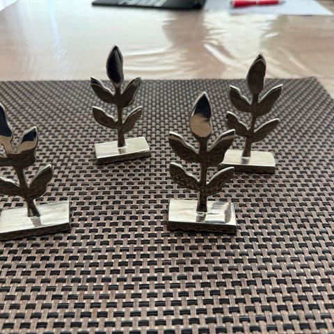 7 stk bordkortholdere sølvfarget metall grener blader