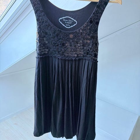 Sort riccivero kjole i str S. Myk god kvalitet, faller pent. Ca mål: 90 cm lang. Kun brukt ved 1 anledning og deretter hengt i skapet. Som ny. Se bilder og titt på min profil for mye mer og forskjellig.