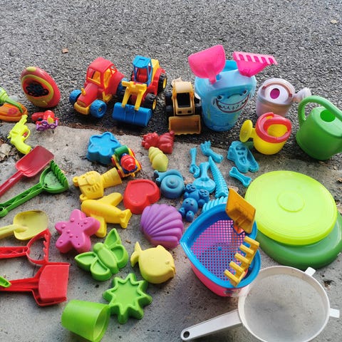 Ulike sandkake-figurer til lek på stranden/i sandkasse uteleke sommer