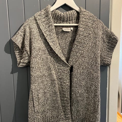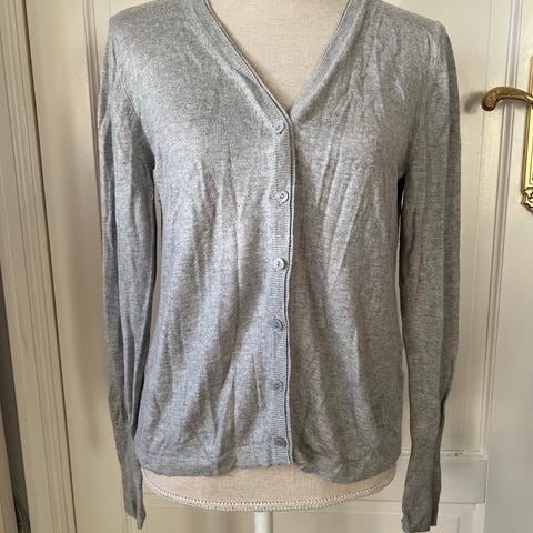 Lang grå cardigan, pent brukt.
