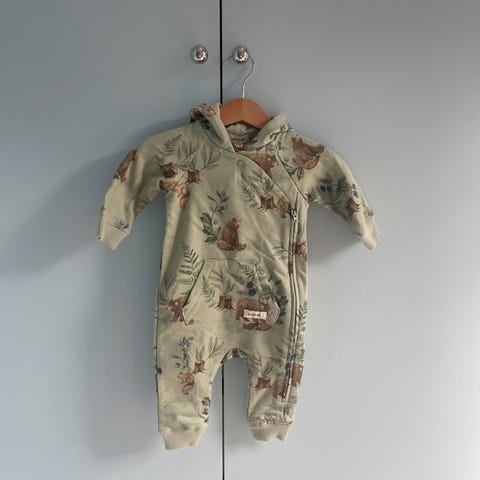 Nydelig og myk heldress fra Newbie, i lys beige med fine treknapper og mørkegrå detaljer. Perfekt som kosedress eller ytterplagg på kjølige dager.