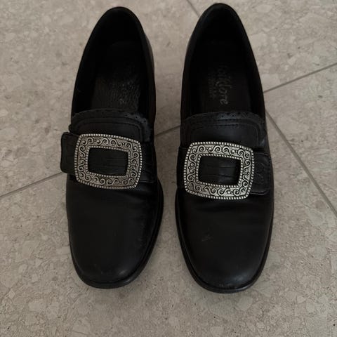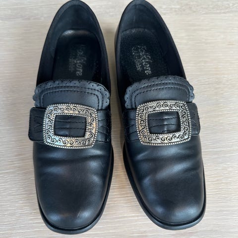 Bunadssko fra Folklore i str. 36. Gode å gå i. Noen bruksmerker, men ikke mye slitasje. Kan sendes raskt