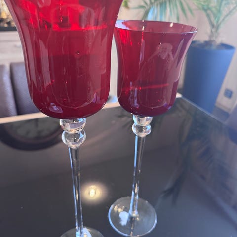 2 stk røde stettlysestaker for telys selges