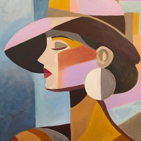 Selger et fargerikt og energisk maleri med kubansk tema, malt i en livlig pop-art-stil. Motivet inkluderer de ikoniske romflaskene Havana Club og Santiago de Cuba, sammen med en kubansk sigar og cocktail – alt badet i varme farger med sterk visuell tilstedeværelse.
