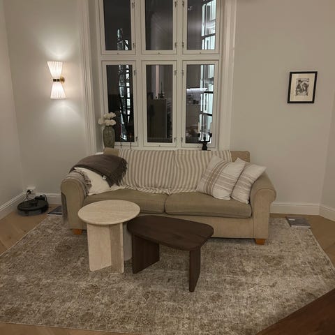 Godt brukt 2-seters sofa gis bort mot henting da jeg har bestilt en ny sofa til leiligheten. Leiligheten har vært utleid i noen år, og sofaen er derfor godt brukt med synlige bruksmerker. Sofaputene kan nok vaskes og det er mulig å leie en sofarenser fra diverse firmaer, så vil den nok bli mye penere med en gang.