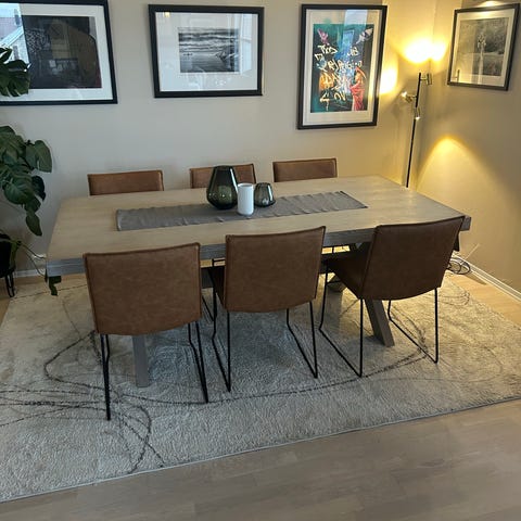 Selger et meget lekkert spisebord av merke Riviera Maison. Et eksklusivt og tidløst spisebord. Kjøpt nytt av meg og hatt bordet i litt over 5 år. Bordet er helt unikt og laget av tre.