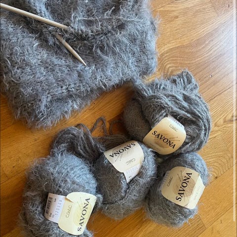 Camel garn fra Viking selges samlet. Alle har samme innfarging, men noen mangler magebånd.