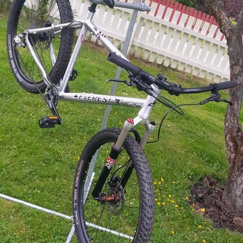 Sykkel med karbonramme fra 2007. Hjulene er 26 tommer.