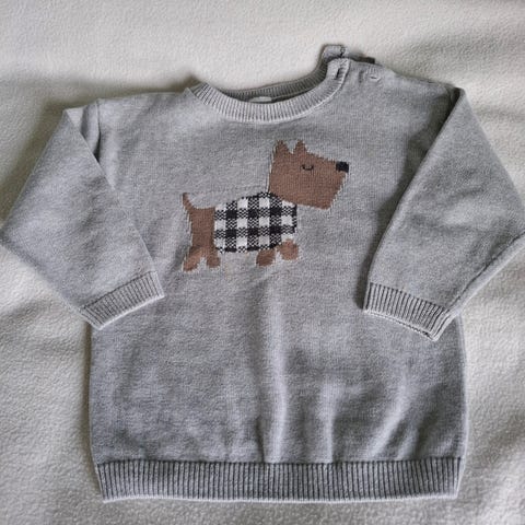 Fint strikket bommulsgenser m/hund.så og si ubrukt.