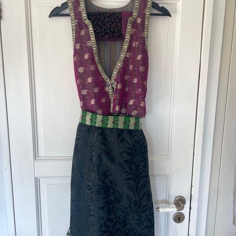 Amalie Norsk Festdrakt med skjorte i 100% bomull. Vest med flott broderidekor, kantebånd i fløyel og sølvfarget snor. Stakk i 50% ull med ekstra sømrom så den enkelt kan reguleres i lengde. Belte med flotte sølvfarget hekter. Festdrakten er i god utførelse og kvalitet og behagelig på. Et godt alternativ til bunad.