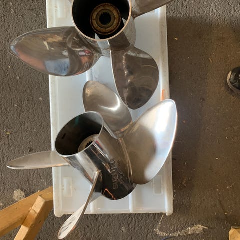 Alle propellene er i meget god stand , vært til kontroll og eventuell rep,avballansering på spesialverksted , så i de fleste tilfelle bedre enn de som kjøpes nye hos forhandler.