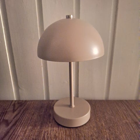 Touch lampe med berørings av og på knapp på toppen av lampen, tre forskjellige lys utrykk. )se bildene). Lampen er laget av plastikk.