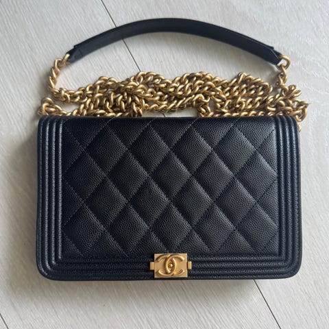 Selger med tungt hjerte min Chanel woc wallet on chain med gold hardware. Kjøpt i Italia. Meget pent og lite brukt. Ingen skader eller flekker. Ganske plettfri veske, som fortjener ny eier!