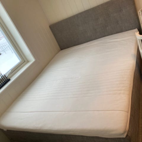 Selger en elegant og komfortabel IKEA Skårer rammemadrass i fargen mørk beige, medium fasthet. Sengen har stått i et gjesterom og er kun brukt i ca. 2 uker totalt – altså praktisk talt ny, uten merker eller slitasje.