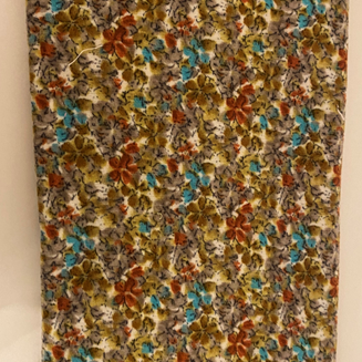 Mykt og behagelig stoff med strech, mønstret, flerfarget,blomstermotiv på deler av mønster. Lengde: 6 meter og bredde: 120cm. (Se gjerne mine andre annonser også)