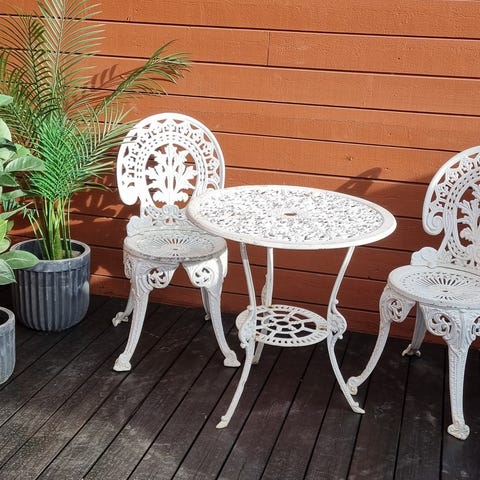 Ønsker å kjøpe ett café sett. Helst med 2 stoler og bord. Da i metall. Jo eldre jo bedre. Røff stand er ok.