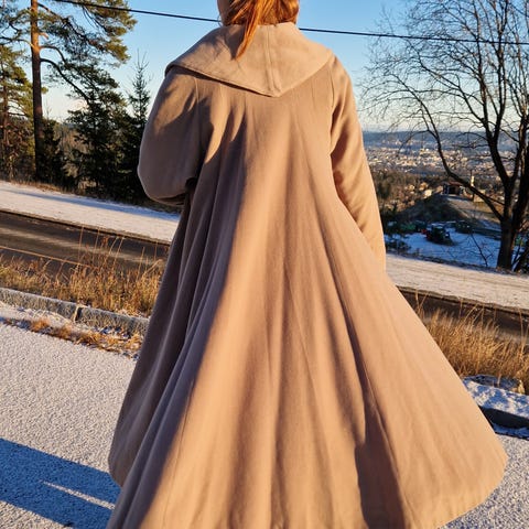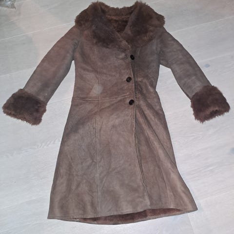 Kåpen er str 38, fint brukt. Den har noe slitasje inni fóret, men d vises ikke utenpå.