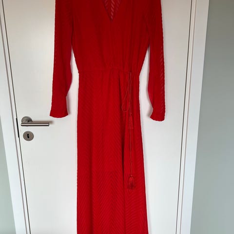 Lang kjole, tungt eksklusivt stoff, lys mint, ikke brukt. Str. 36-38. Skjelden fra HM. Perfekt til bryllup eller fest.