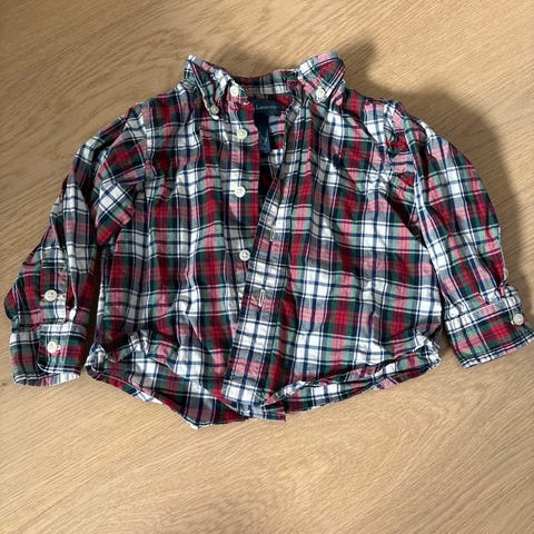 Selger en pent brukt Ralph Lauren pique-skjorte i størrelse 6 måneder.