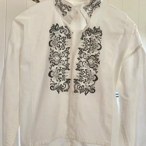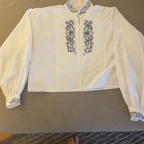 Hvit bunadsskjorte, håndbrodert (grå-svart)