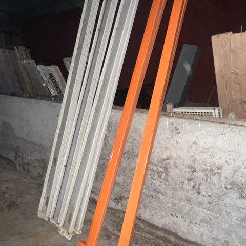 Ca 650 bærejern (350 pr stk + mva) og 112 stiger (350 pr stk + mva). Stigene mangler øvre tverrstag. Antall oppdateres etterhvert som det selges.