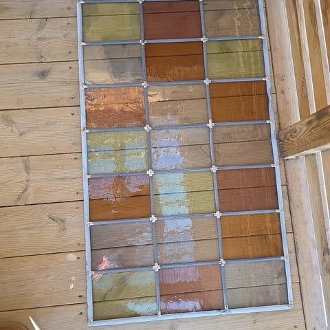 En del forsjellige blyglass vinduer med katedralglasser og med og uten rammer i forsjellige størrelser selges.tlf 90750221