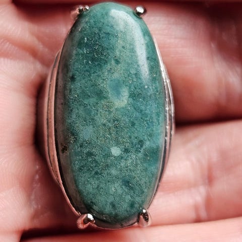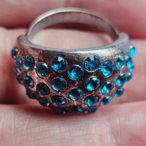 Søte ring med mørkt stein og emalje