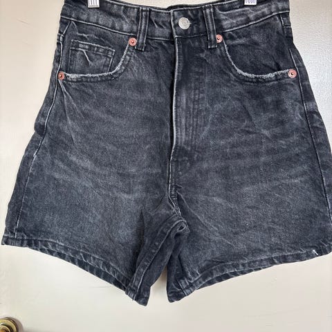 Svart/grå dongerishorts med høyt liv, 36, Zara
