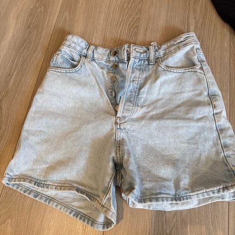 Superfin, lyseblå shorts fra Zara med høyt liv. Den er i størrelse small. Selges fordi den dessverre er for stor til meg (jeg bruker vanligvis XS).