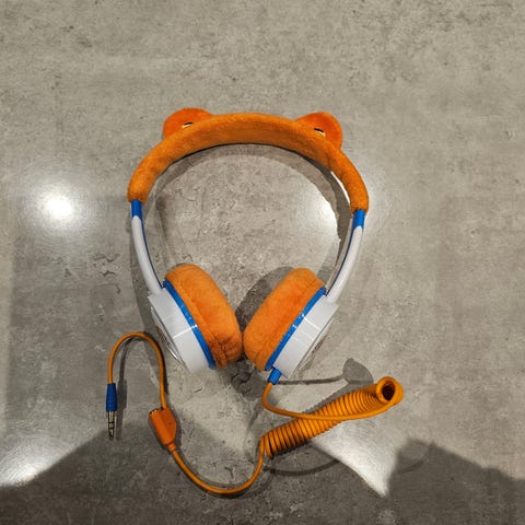 On ear-hodetelefoner med ledning – for barn, maksimalt volum 85 dB.