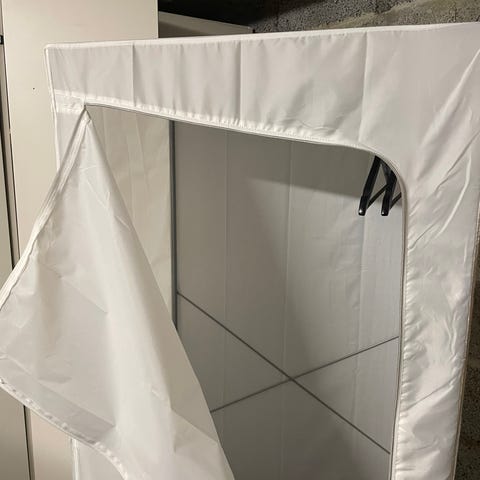 Barnegarderobe i form av et hus(rosa +syrin)-200 kr.