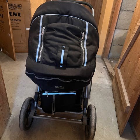 Pent brukt kombivogn som vi har vært utrolig fornøyd med. Vogna har både bag og sporstdel. Sterk og stabil, fungerer også veldig bra på turer i marka. Overdelen kan snus, slik at barnet kan se begge veier. Hjulene er lett å ta av, slik at vogna også passer i litt mindre bagasjerom. Innebygd myggnetting og sunscreen i hver overdel. Diverse tilbehør: regntrekk myggnetting mm, se bilde.