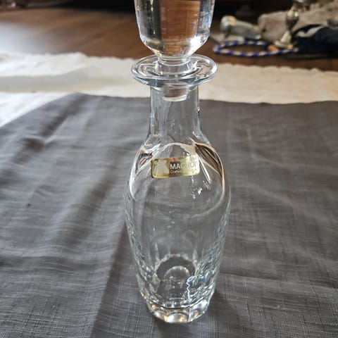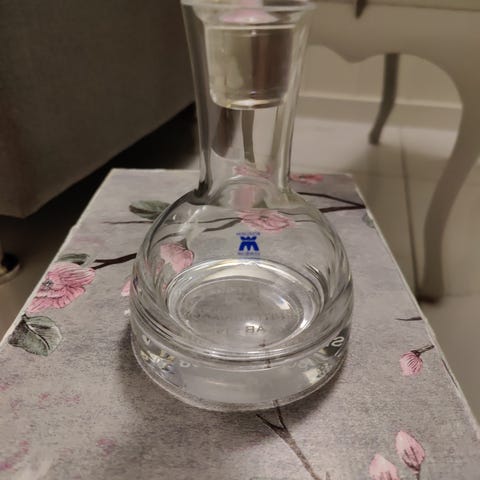 Vintage glasskaraffel signert Gruer Pedersen -98 selges. Ingen synlige bruksmerker. Sannsynligvis ikke brukt.