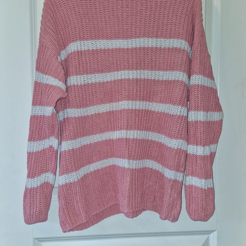Ny genser med hvite og rosa striper. Størrelse M