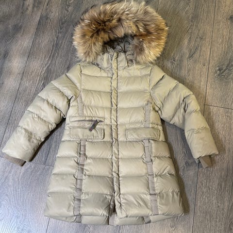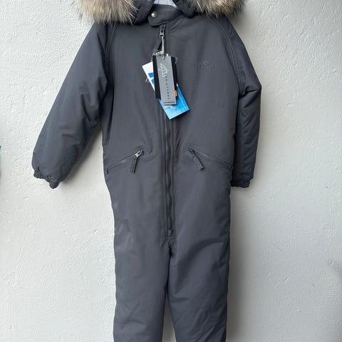 Vinterdress fra ver de terre med ekte pels. Litt stor i størrelsen. Størrelse 6 år. Nyvasket og impregnert med tex vaskemiddel. To små anmerkninger i rumpe (1 mm hull) og knær (lett misfarging) men mye bruk igjen da vi hadde 4 vinterdresser. Selges derfor rimelig. Nypris 3800 selges for 600