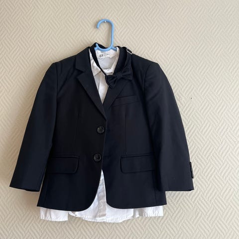 Hvit skjorte og lyseblå skjorte følger med- og er fra Vannucci, i str.8/9 år (romslige).